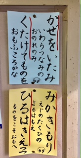 1年2組の教室に、大きな句が二首、貼ってありました。