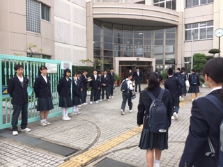 1年生は全クラスと2・3年生は5組の風紀安全委員の皆さんと生徒会役員が勢ぞろいで元気にあいさつ運動を行いました☆