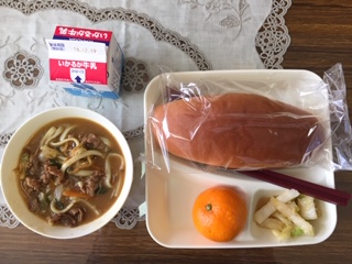 【カレーうどん・白菜のおひたし・みかん・パン・牛乳】