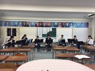 年末に木管七重奏でアンサンブルコンテストに出場する吹奏楽部。