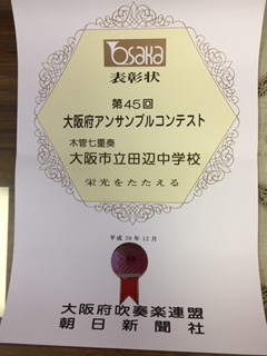 第45回 大阪府アンサンブルコンテストに出場した吹奏楽部。