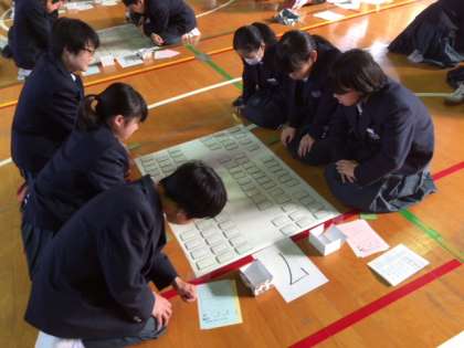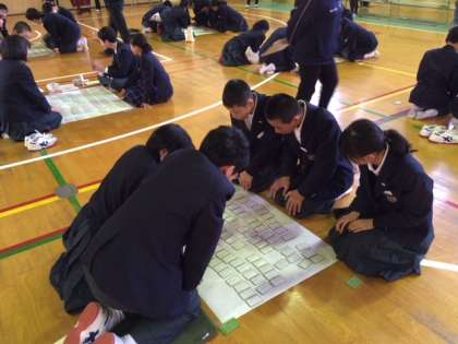 1年生カルタ大会の競技中の様子です。