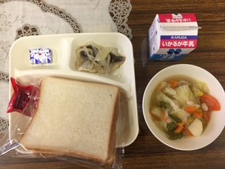 【あじのレモンマリネ・スープ煮・固形チーズ・食パン・牛乳】