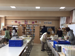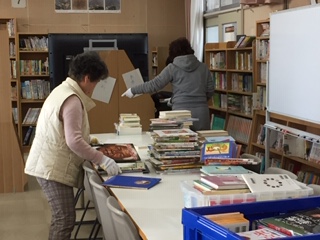 図書室のリニューアルも終り、今日は多くのボランティアの皆さまが本の整理のために来てくださいました。