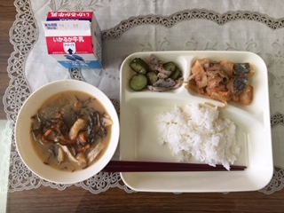 【さけの南蛮づけ・もずくのお味噌汁・れんこんの赤しそあえ・ごはん・牛乳】