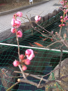 学校の築山の梅もほころび、春の予感を感じました(*^_^*)