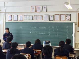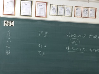学習のめあてもきっちりと示され、教科の学習だけではなく、特別活動や総合の時間も「何を学習するのか」ということが生徒に分かりやすく示されていました☆