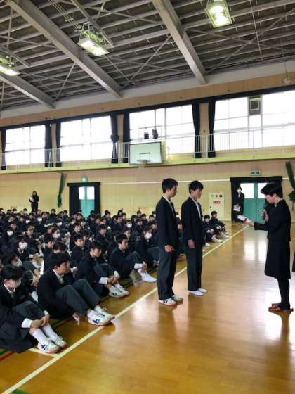 1・2年生の皆さんもとっても頑張っていることを褒めてあげました。先日の卒業式、とても立派な卒業式を行うことが出来たことを伝え、田辺中学校の良き伝統を引き継いでほしいことも併せて伝えました。