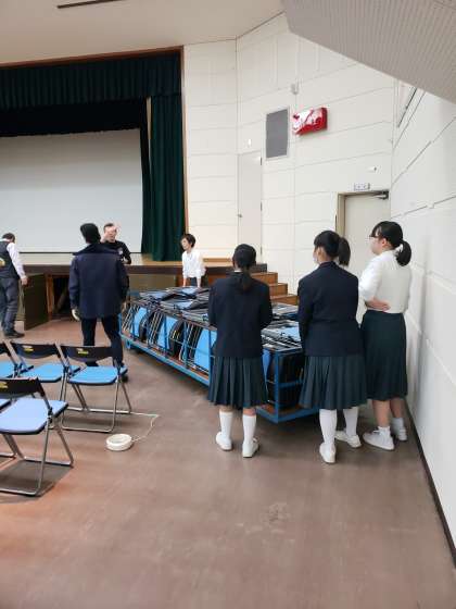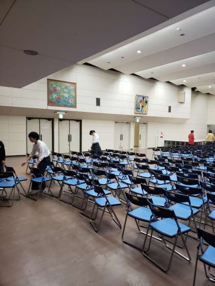 今日は、生徒会役員が会場作りのお手伝いに行きました。