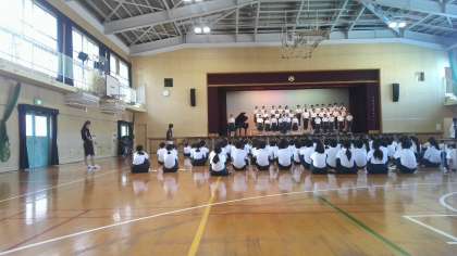 発声練習から始まり、校歌を全体で歌ってからリハーサルに移りました。