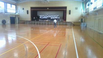 また取り組みの時間を利用して、各クラス体育館で課題曲と自由曲を歌いました。