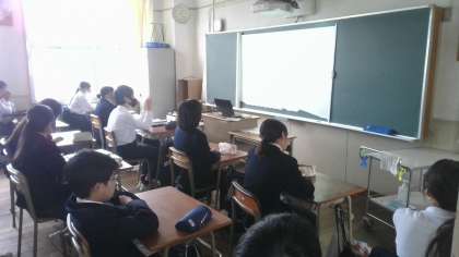 本来、体育館で行う予定でしたが、感染症拡大防止の観点から、各クラスでのリモートで行いました。一人ひとり真剣に話を聞いていました。