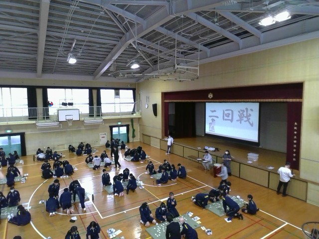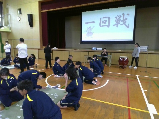 2月10日(火)に2年生百人一首大会がありました。みなさん1枚1枚覚えてきた札を一生懸命に取りに行き喜ぶ姿や取られて悔しがる姿がたくさんありました。