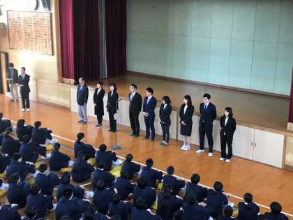 着任式では、転任してきた先生の紹介やあいさつがありました。