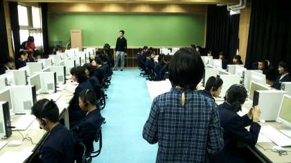 今年度は、国語・数学・英語・生徒への質問の調査が行われました。英語においては、コンピュータを用いた、「話すこと」調査も行われました。写真は、その時の様子です。生徒は、真剣に取り組んでいました。
