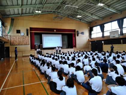 最初に、修学旅行実行委員会の文化部の生徒たちによるプレゼンテーションです。