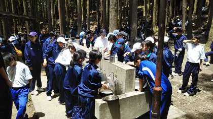 美味しくカレーライスをいただいた後は、全員で協力して後片付けです。これも、チームワークが大切です。