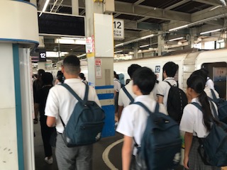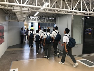 広島に到着しました。改札を出て、整列後、オリエンテーリングを始めます。