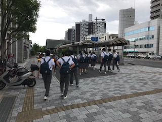 画像はC城北コースのチェックポイントを通過した生徒の様子です。