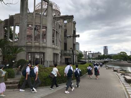 全員、平和記念公園に到着しました。まもなく平和セレモニーを行います。