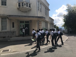 全班、無事に江波山気象館に到着し、入館しました。これからお話を聞いたり、サイエンスショーを見たりします。