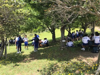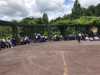 目的別学習が終わり、花みどり公園で昼ご飯を食べています。
