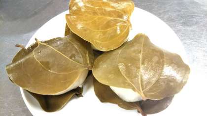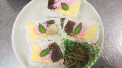とても美味しい、押し寿司としば餅の完成です。いっぱいいただき、お腹もいっぱいです。(^_^)v