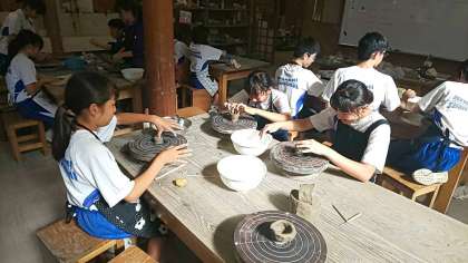 こちらのコースでは、ろくろ体験中です。