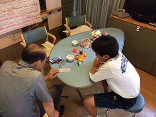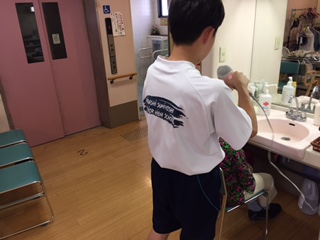 こちらのデイサービスのグループはもう慣れた様子で、楽しくおしゃべりをしたり、利用者さんの髪を乾かしたり、お茶を出したりと、それぞれがしっかり活動しています。