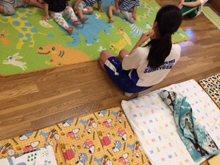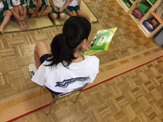 こちらの保育園では、3日目恒例の絵本の読み聞かせです。緊張しているようですが、練習の成果は発揮できるかな…?