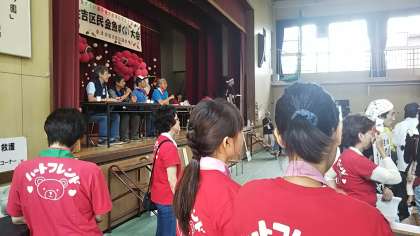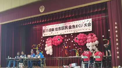 6月23日(日)、桑津小学校で、桑津地域活動協議会主催・NPO法人ハートフレンド運営のもと、「第15回東住吉区金魚すくい選手権大会ハートフレンドカップ」が開催されました。おとなから子どもまで多くの方が参加され、世代間交流も図れました。また、子どもたちのため、多くの団体が運営に協力してくださっています。地域でジュニア防災リーダーをしている本校の生徒も、司会進行を務めました。地域の皆様、子どもたちのため、いつもご尽力いただきありがとうございます。