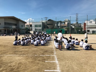 9日(月)の6限に、体育大会のレースコース確認を行いました。各種目に分かれて、並び方の確認をして、競技の注意点を聞きました。その後、閉会式の入場の仕方を練習しました。