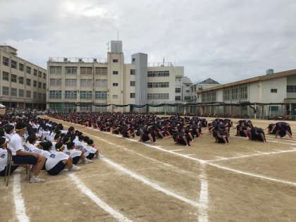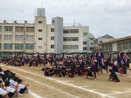 9月20日(金)、第73回体育大会がありました。晴天の中、競技を始めることができましたが、午後のリレーから雨が降り出してしまいました。しかし、雨に負けない白熱したレースを見せてくれ、3年生は素晴らしい学年演技を発表をしてくれました。元気で笑顔あふれるダンスと、迫力のある息の合ったソーラン節にたくさんの拍手が送られました。3年生の一生懸命に取り組む姿は、後輩たちの心にもきっと強い印象を残したと思います。