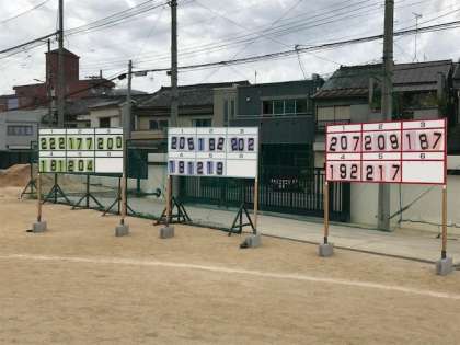 3枚目の画像は、本日の体育大会の結果です。緑色が1年生、青色が2年生、赤色が3年生です。