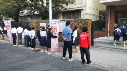 毎週木曜日は、生徒会役員による「あいさつ運動」を実施しています。新生徒会としての活動が始まりましたが、前生徒会役員に負けず大きな声で登校してくる生徒にあいさつをしていました。