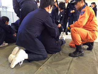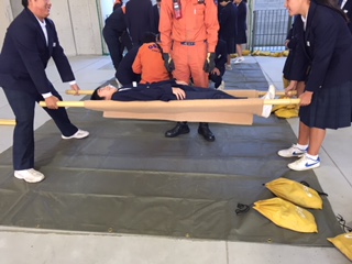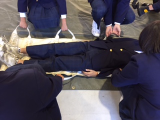「搬送体験」では、3種類の搬送の方法を学びました。それぞれに注意する点があり、力の入れ方の難しさや、協力することの大切さなどを学びました。