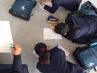 続々と学校に帰ってきています。最後に各班でしおりを仕上げています。格技室内では、楽しそうに報告しあっています。