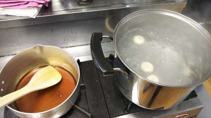 本日もゲストティチャー来ていただき、白玉団子とスコーンを作りました。白玉団子は豆腐を練り込んだゲストティーチャーのオリジナル。白玉団子もスコーンも、子どもたちは班で協力して完成させていました。味も、最高のできばえでした。