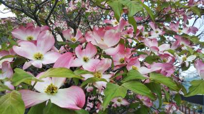 桜の新緑が鮮やかです。校内のツツジも花を咲かせました。近鉄の高架から、学校の正門へと続く道にあるハナミズキには薄紅色の花がつきました。季節の移ろいを感じます。早く学校が始まればいいですね。