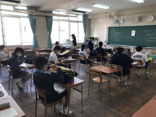 14日(木)は、2年生の登校日でした。1年生と同じく、1クラスを3分割し、時間をずらして登校しました。感染症予防のため、教室の扉や窓を開放し、アルコール消毒液での手指の消毒、使用後の教室内の椅子や机の消毒などの対策をとっています。
