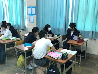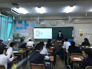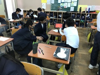 今回の授業では、事前にパソコン室を活用して用意した資料をもとに、タブレットを使って、グループやクラスで発表しました。発表後、投票を行い、クラスで一番の名言を決めました。