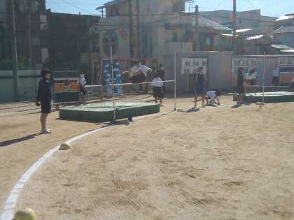 ハンドボール投げと並行して、走り高跳びが行われました。