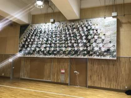 2年生は合計253枚の台紙を使って、モザイクアートで集合写真を作りました。
