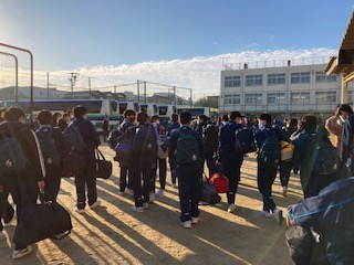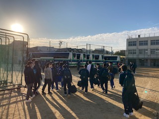 いよいよバスに乗り込んで出発です。みんなウキウキした表情です。今日から3日間、思い出に残る修学旅行になるように楽しんできます。