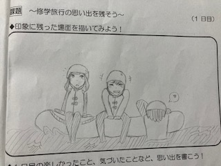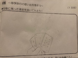 自由時間も終わり、それぞれの部屋で一日の感想などを書いて振り返りをしています。それと同時に室長会議も行われ、明日の連絡が伝えられました。