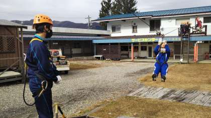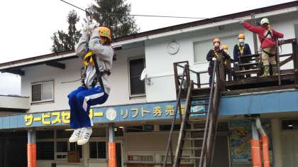 ジップラインの練習風景です。練習が終われば、山の上まで行き、それからが本番になります。