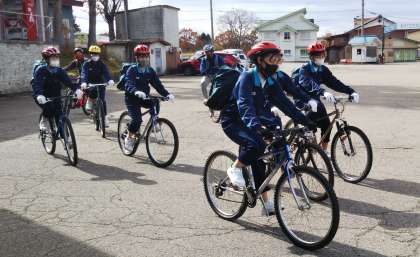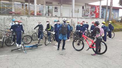 MTBの運転操作練習が終わり、サイクリングに出かけました。起伏のある山道を走破します。