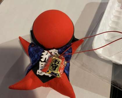 ちゃんちゃんこを着せたり、お守りを持たせたりして完成です。