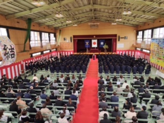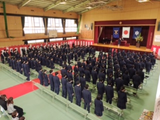 校長先生から式辞をいただき、在校生代表から送辞、卒業生代表から答辞がありました。答辞では、在校生や家族、教職員、72期生の仲間への感謝の思いが込められ、「この先、生きていく上で、思い通りにならないことやくじけそうなことがあっても、諦めずに努力し、前を向いて歩いていきましょう。」と、未来へ思いが読まれました。