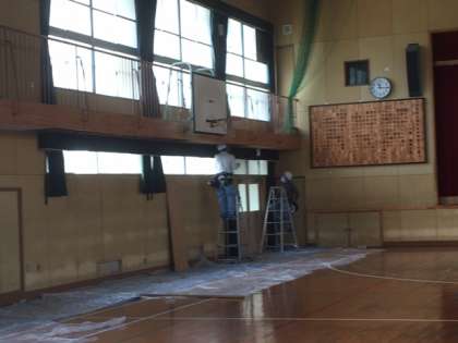 大阪市の都市整備局による体育館の空調設置工事が夏季休業中に行われる予定で、そのための事前の工事が、体育の授業等には影響のない形で、少しずつ行われます。